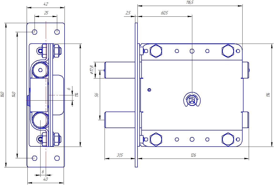 Невелика відмінність пов'язана лише з тим, що в механізмі встановлено один повідець, а не два. Важливим моментом є те, що вісь ключового отвору механізму секретності зміщена щодо осі ручки, що є елементом захисту замка від такого методу кримінального злому, як свердління. Основа з'єднується з кришкою замку двома заклепками, які легко перевстановити при заміні, наприклад, механізму секретності. Природно, що силове кріплення кришки замка до основи здійснюється чотирма болтами М8 під час монтажу замка на двері.