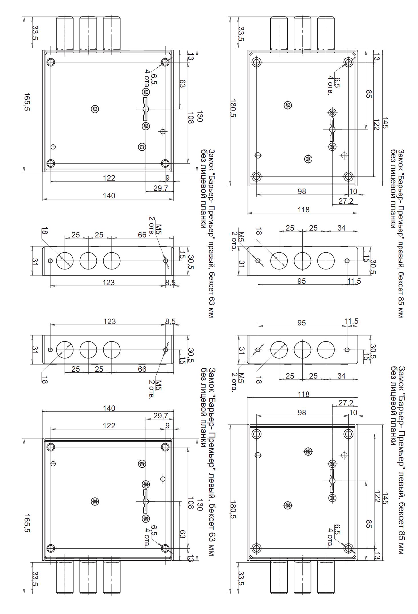 Бар'єр-Прем'єр кріпиться на лівосторонні броньовані двері з металу. Закривається на 2 обороти. У комплекті до замку йдуть 5 сувальдних ключів. Якщо вам потрібно, щоб робітники отримали вільний доступ до квартири або офісу, можна видати їм монтажний ключ. Після того, як вони все зроблять, просто видаліть із замка борідку і цей ключ більше не відчинить двері.
