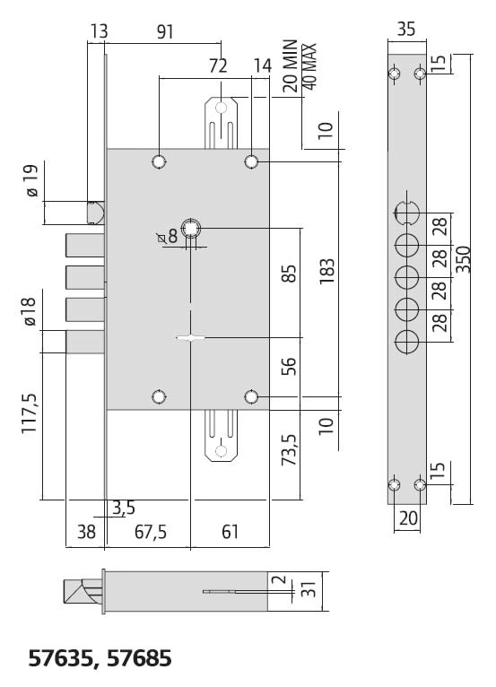 Ціна: 4000 грн. замовитиCISA 57685 являє собою циліндровий механічний перекодувальний замок із засувкою та приводом вертикальних тяг. Встановлюється в сталеві двері як основний нижній замок, як правило, з натискною ручкою.