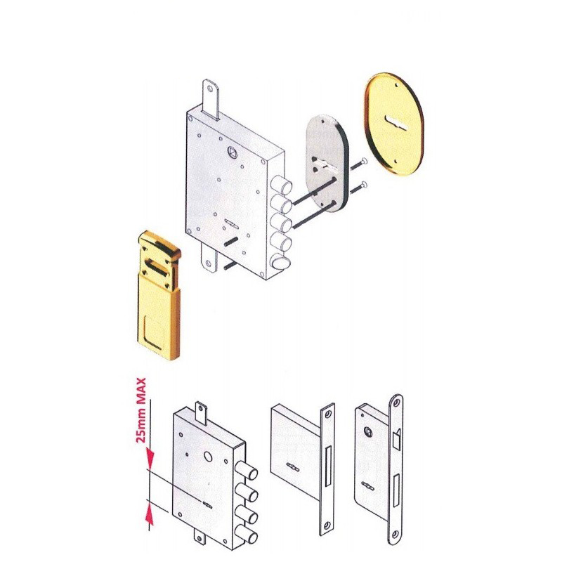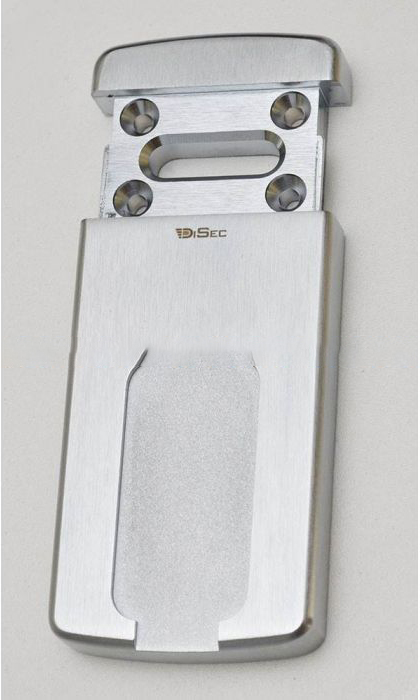 Для додаткового захисту від металорізального інструменту броненакладка забезпечена загартованою марганцевою пластиною встановленою з внутрішньої сторони зсувної кришки.