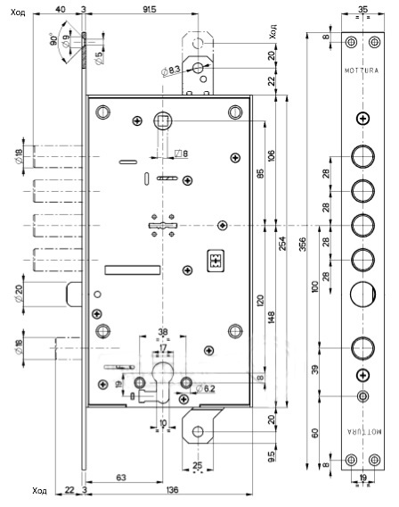 Ціна: 4700 грн. замовитиФірма Mottura розробила подвійні замки з двома окремими системами замикання, переслідуючи такі цілі: розширення функцій замку; встановлення певної послідовності при замиканні замку (залежні/незалежні замки); збільшення часу злому. Замок Mottura 54797 є замком комбінованого типу. Комбіновані замки (PLURISYSTEM) мають два різні типи замикання, суміщені в одному замку, представляють надійний захист від розтину і злому: верхній сувальдний механізм забезпечує основне силове замикання замку, нижній циліндровий замок забезпечує контрольну функцію. У замку передбачено залежне замикання обох механізмів: при замиканні циліндрового механізму верхній ключовий отвір перекриває шторка. Врізний замок Mottura 54797 комплектується ключами нового покоління зі змінним кодуванням, які мають незалежну ліву та праву сторони, оскільки відстань між протилежними зубцями змінюється від позиції до позиції. У зв'язку з цим значно утруднюється маніпуляційне розтин замку: визначення кодування ключа необхідно відтворити зміни обох сторін ключа і декодувати перший і другий оберти; завдяки несиметричності сторін ключа кількість кодових комбінацій зростає багаторазово. Врізний замок Mottura 54797 постачається з новим комплектом сувальд EASY GO, за допомогою якого можлива швидка заміна всього сувальдного механізму. Замки із сувальдами EASY GO мають ключі із зеленими головками. Замок Mottura 54797 комплектується 6 сувальдами, серед яких є сувальди, що не мають пружин. Також блок сувальд розташований ближче до внутрішньої частини замку, а стійка хвостовика має вбудовану твердосплавну кульку, яка перешкоджає висвердлюванню. Ця обставина значно ускладнює розтин замку відмичками та іншими кримінальними способами. Рекомендується встановлення марганцевої пластини для замку та броненакладки для циліндрового механізму. Сувальдні замки Mottura мають спеціальний запатентований механізм проти вдавлювання ригелів усередину замка. Ригельна система висувається із замка на 40 мм, вбудовані тяги висуваються на 20 мм, діаметр ригелів становить 18 мм. Підходить як для правих, так і лівих дверей. Комплект ключів поставляється в індивідуальному впакуванні, в комплекті 5 ключів. Кількість кодових комбінацій 144 000. Гарантія заводу-виробника 24 місяці. Виробництво Італія.